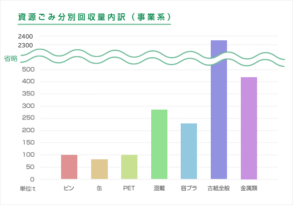 | ビン | 缶 | PET | 混載 | 容プラ | 古紙全般 | 金属類 |