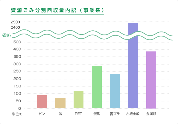 | ビン | 缶 | PET | 混載 | 容プラ | 古紙全般 | 金属類 |