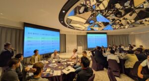 研修会は両団体の挨拶、事業活動報告で始まり、「大阪・関西万博の廃棄物処理について」と題して、万博における「ごみの適正処理等に関するガイドライン」を基に、一廃協事務局長が実情などを解説、翌日の万博内施設見学に向けた事前情報を確認しました。その後、意見交換会として「人材について」「DXについて」等のテーマで、意見集約システムを活用しながら有意義に意見を交わしました。