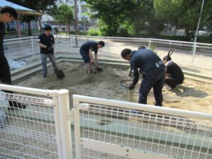 城東区永田公園の砂場清掃をいたしました。